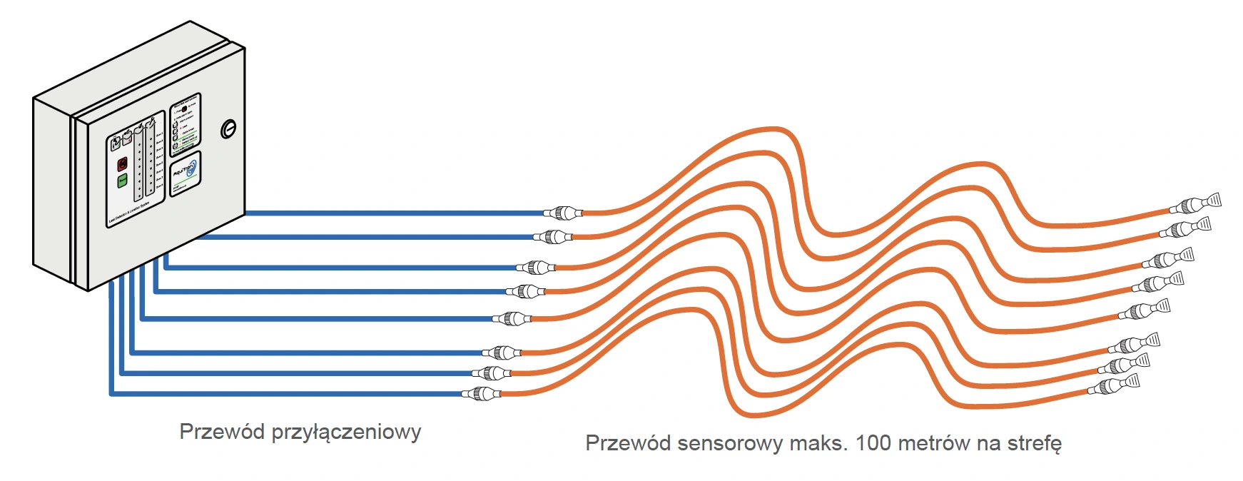 - Wspólny przekaźnik wszystkich stref dla wycieku i usterki.